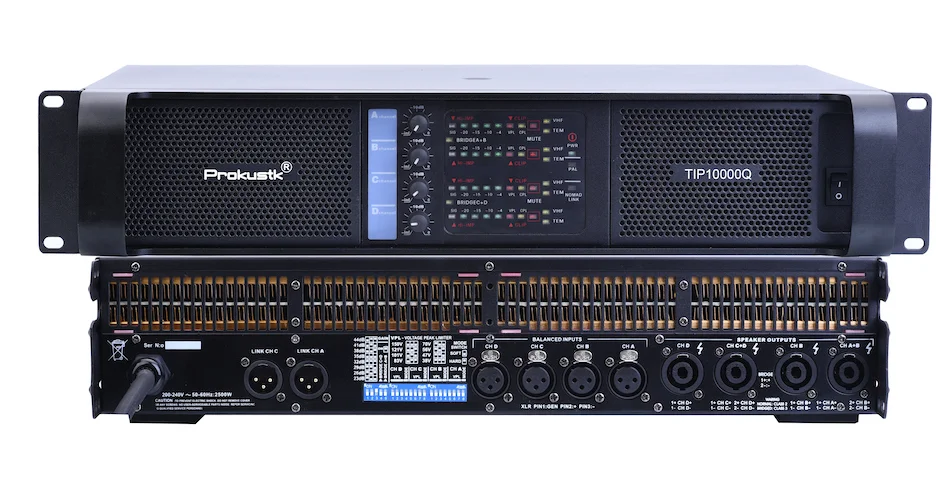 Sugira correspondência:TIP10000Q combina com 4 unidades de alto-falante PA profissional simples de 18 polegadas ou 4 unidades duplas de 15 polegadas.