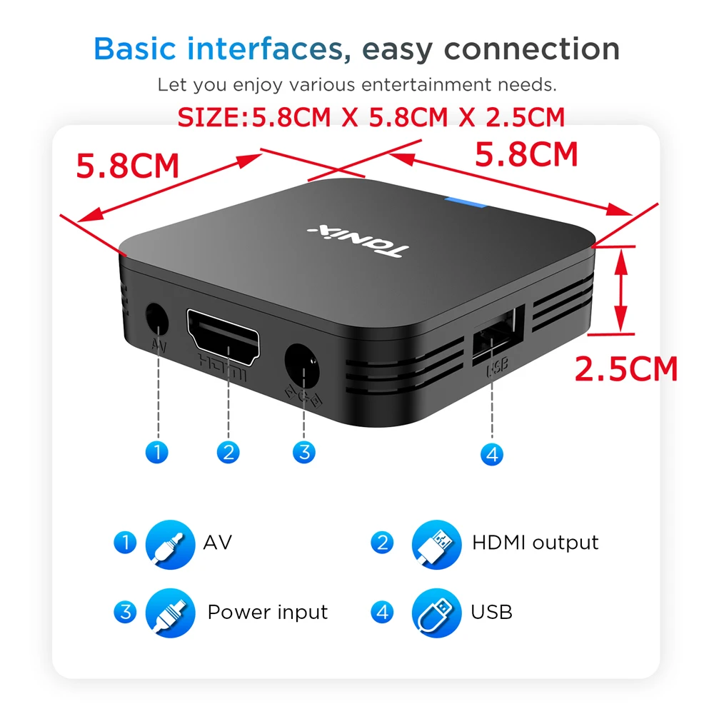 Tanix TX1 Android TV Box Allwinner H313 Quad Core 2.4G Wifi Mini Smart TV Box Alimentação por DC 5V 2A