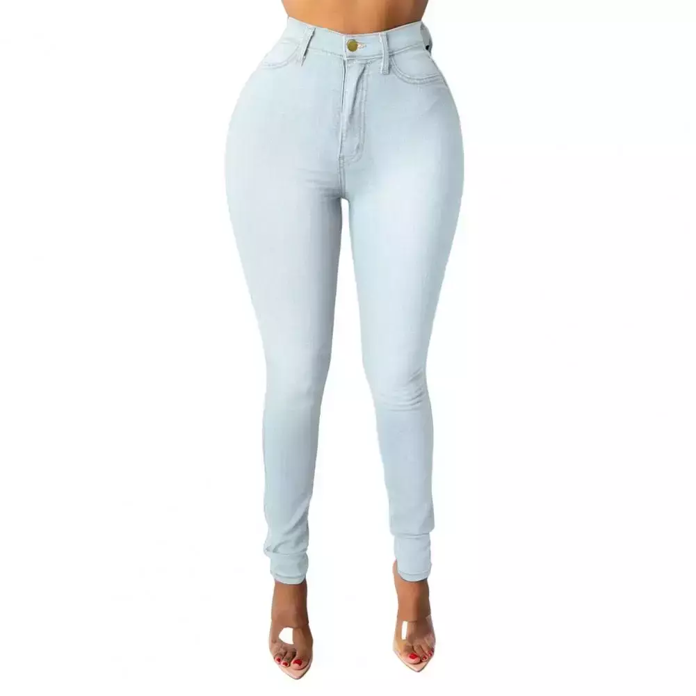Confeccionada com uma combinação de algodão, spandex e denim, esta calça jeans feminina oferece toque suave e ajuste confortável. O design com alta elasticidade valoriza a silhueta, garantindo liberdade de movimento. Os detalhes em botão e bolsos adicionam um toque moderno ao visual.
