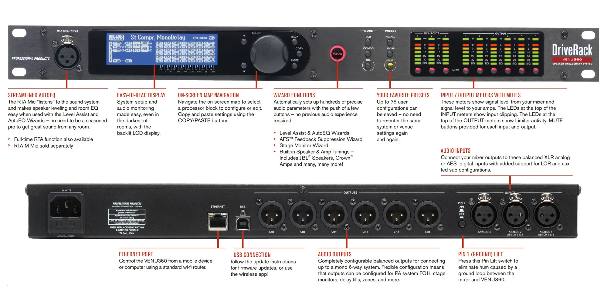 PA2/VENU360 Processador de áudio de palco de 2 entradas e 6 saídas Software original Pro Driver de áudio Rack Processador de áudio de alto-falante profissional