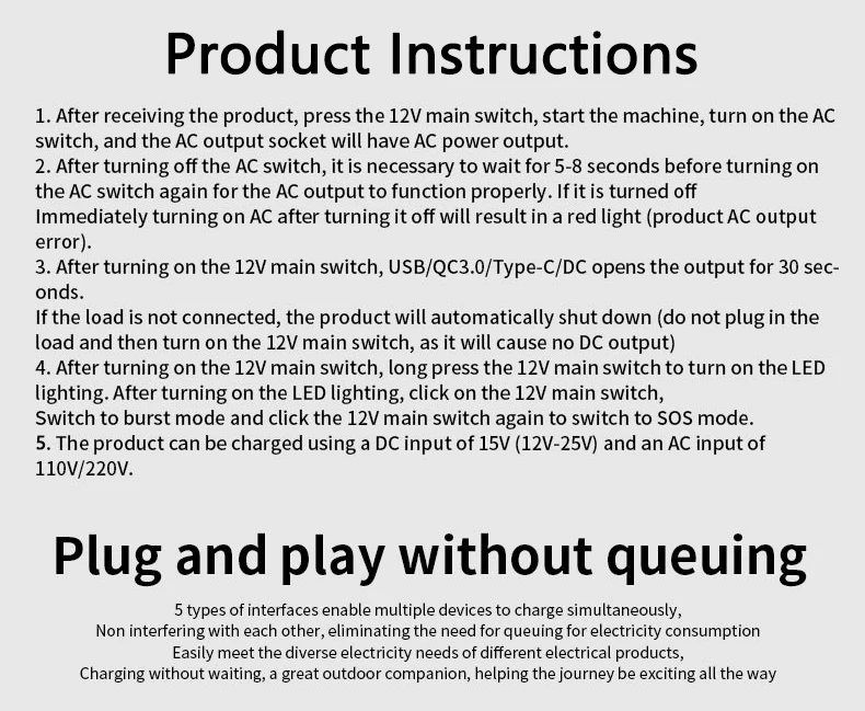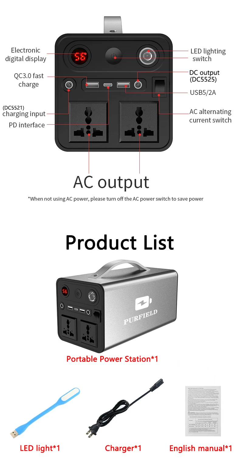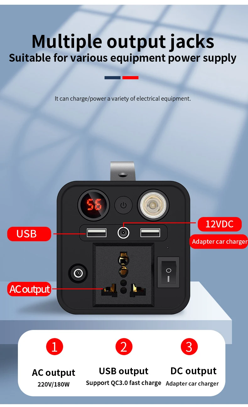 8. Potente, fonte de alimentação para muitos tipos de equipamentos eletrônicos, uso externo, é muito conveniente para uso ao ar livre. Seguro, eficiente, confiável e durável, iluminação externa, vários modos de iluminação noturna, certifique-se de que, sem medo da noite, aviso intermitente SOS, iluminação de emergência, recursos especiais, seguro e eficiente, carregamento rápido, controle de temperatura inteligente, chip inteligente, segurança múltipla proteção, suporte para saída AC/DC/USB