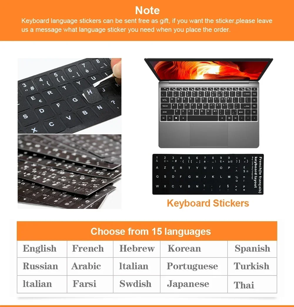 -- Nosso teclado é a versão padrão em inglês QWERTY, mas enviaremos adesivos de teclado de outros idiomas abaixo como presente.Se precisar, deixe-nos uma mensagem.Adesivos de teclado: russo, espanhol, francês, alemão, italiano, hebraico, árabe, turco, tailandês, japonês, coreano.