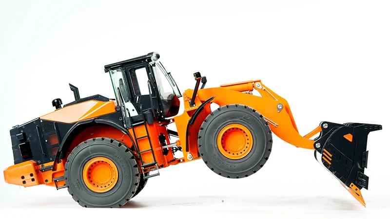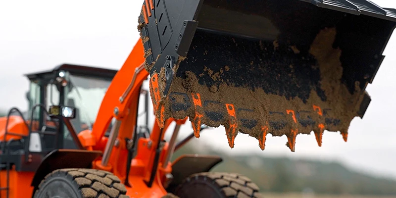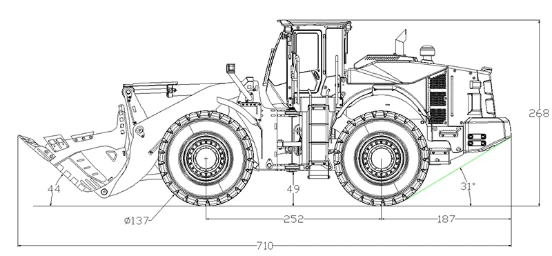 Ângulo máximo da caçamba esquerda e direita: 38 graus