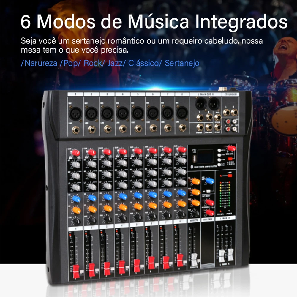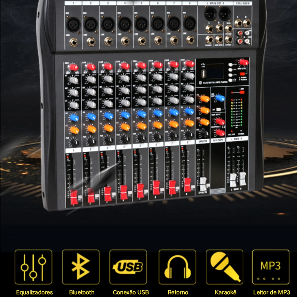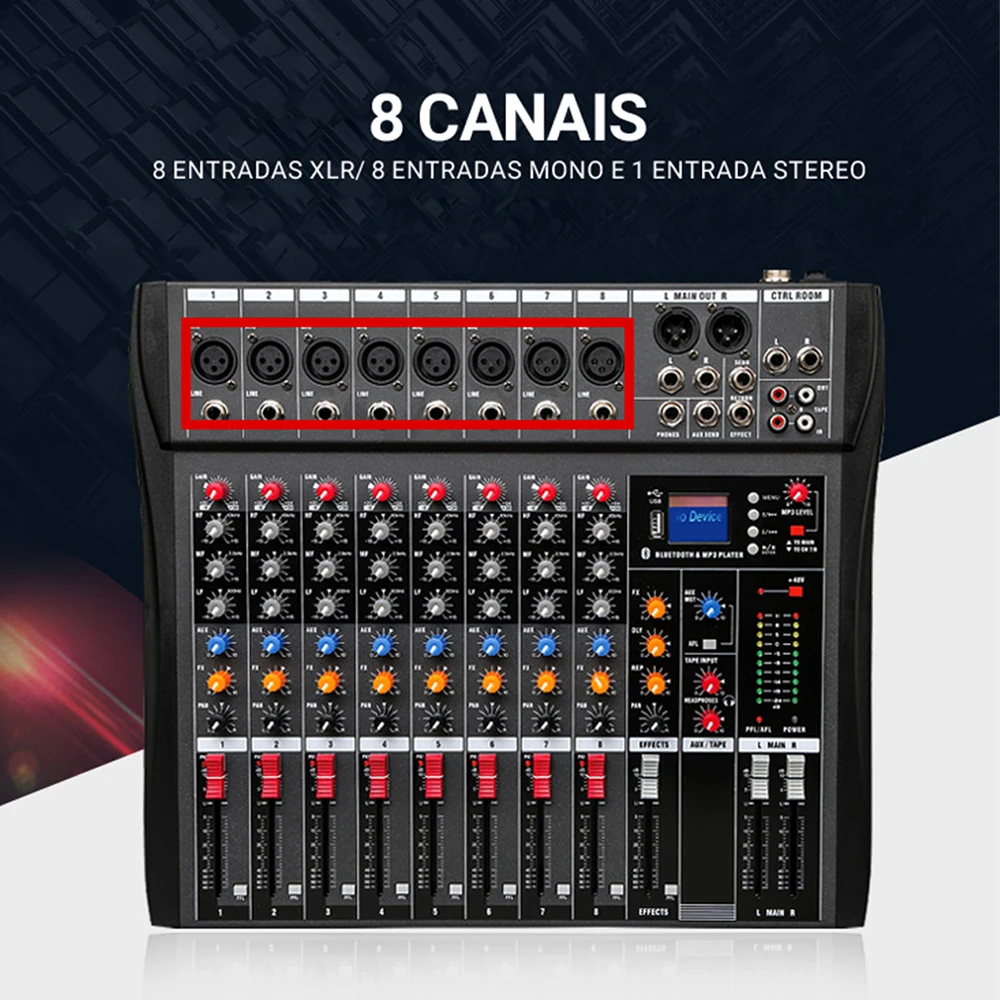 Saídas principais: +26dB balanceado / +22dBu desequilibrado