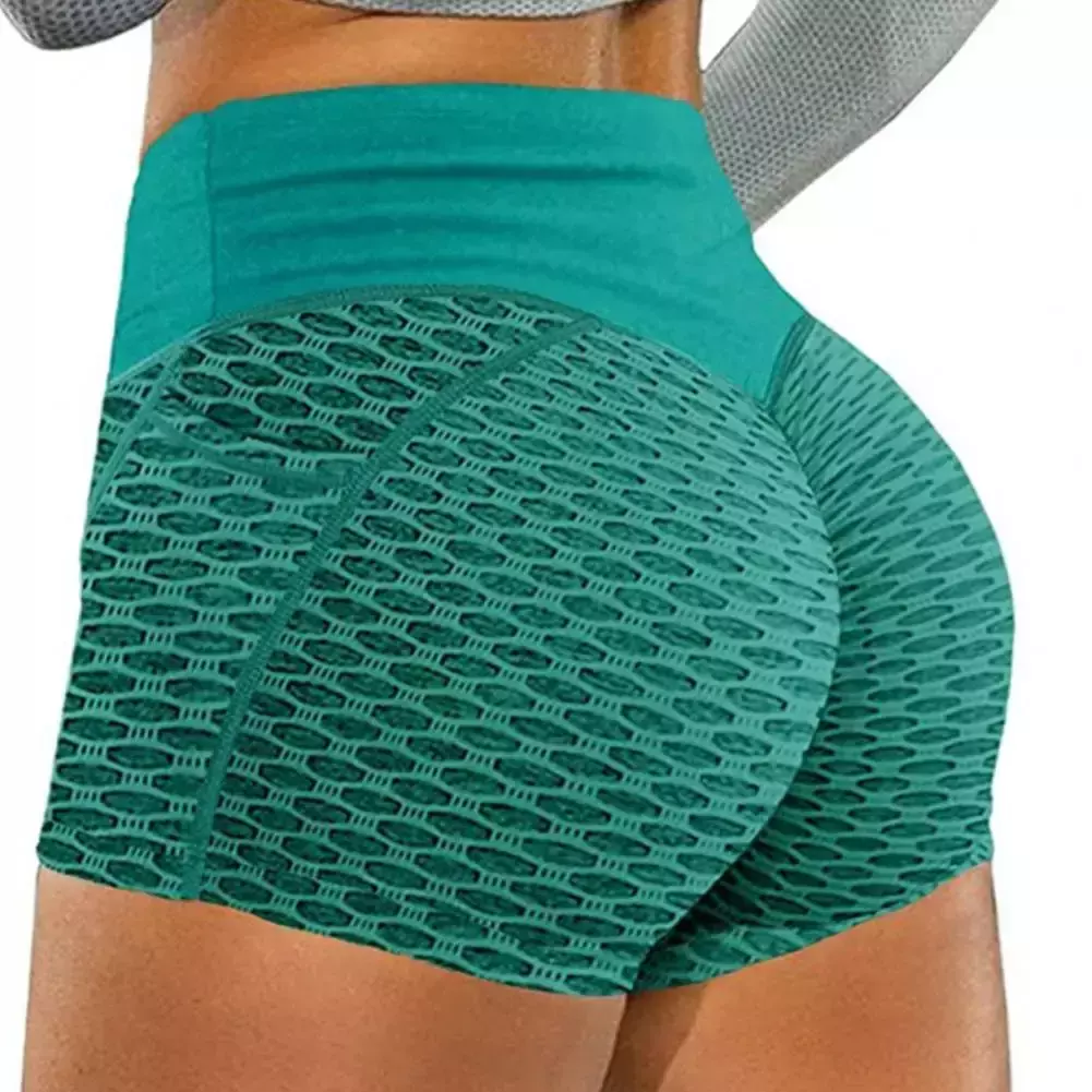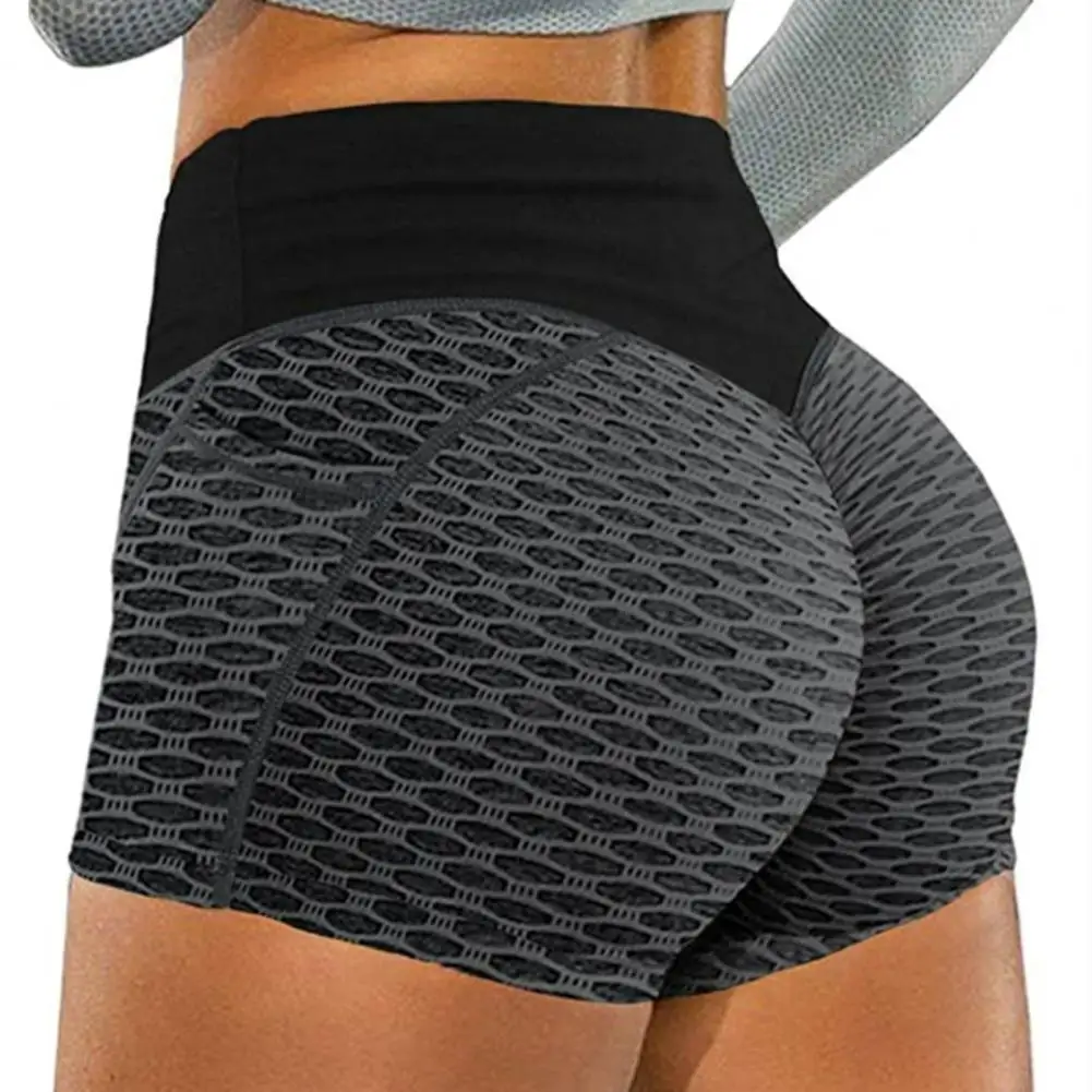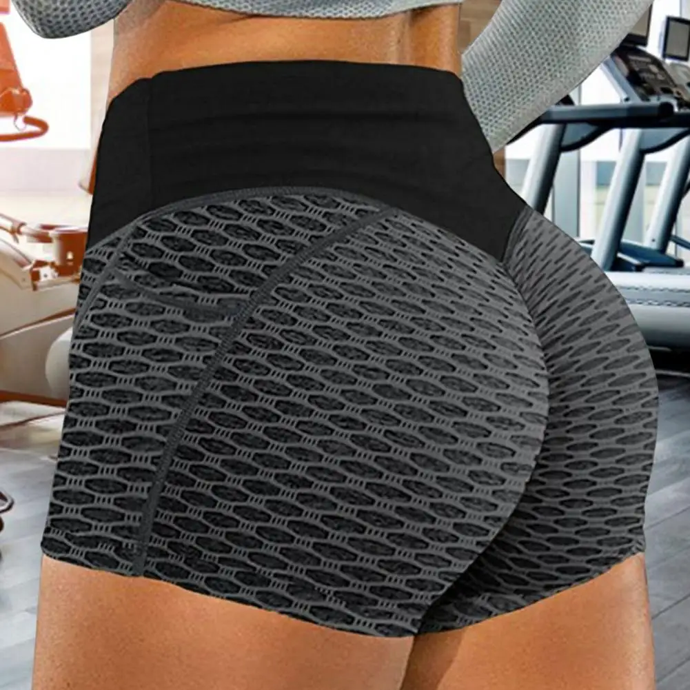 Mulheres yoga shorts cor sólida elástico cintura alta controle de barriga bunda levantada treino respirável favo de mel senhora shorts de verão roupas femininas