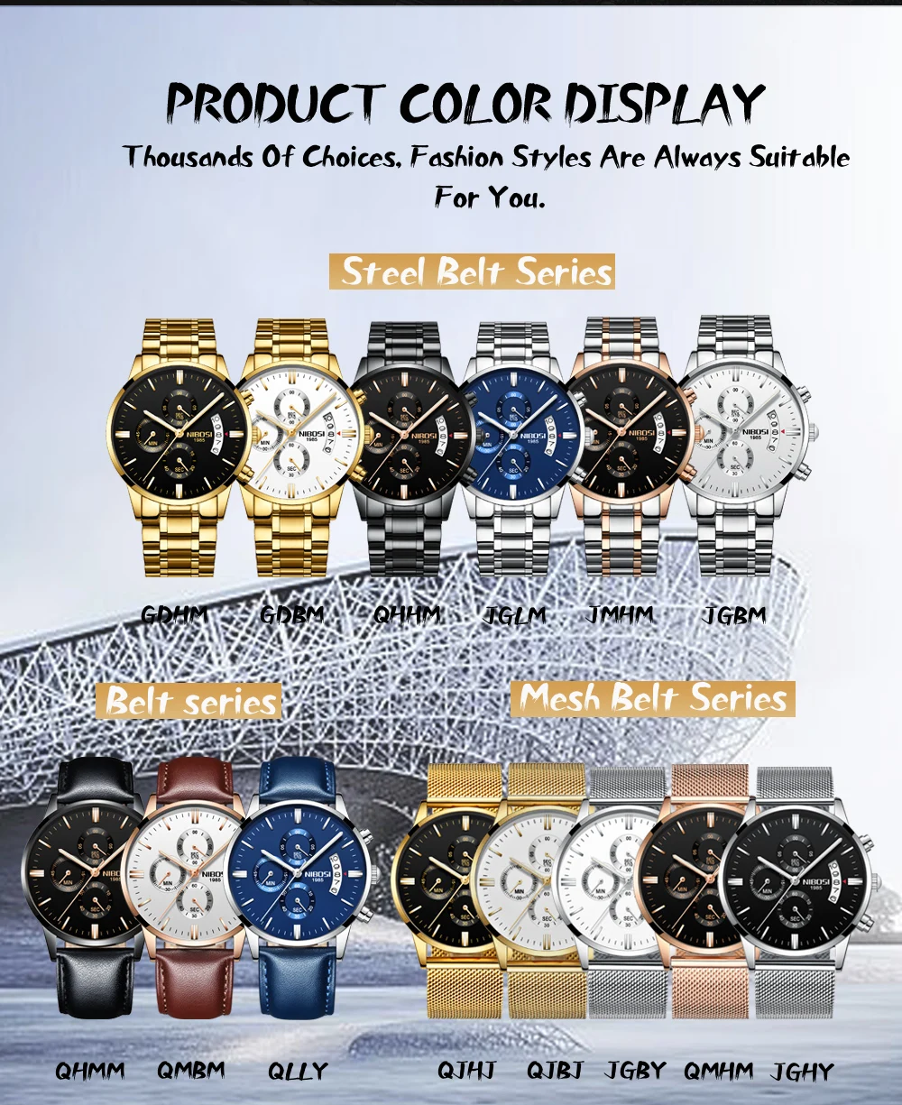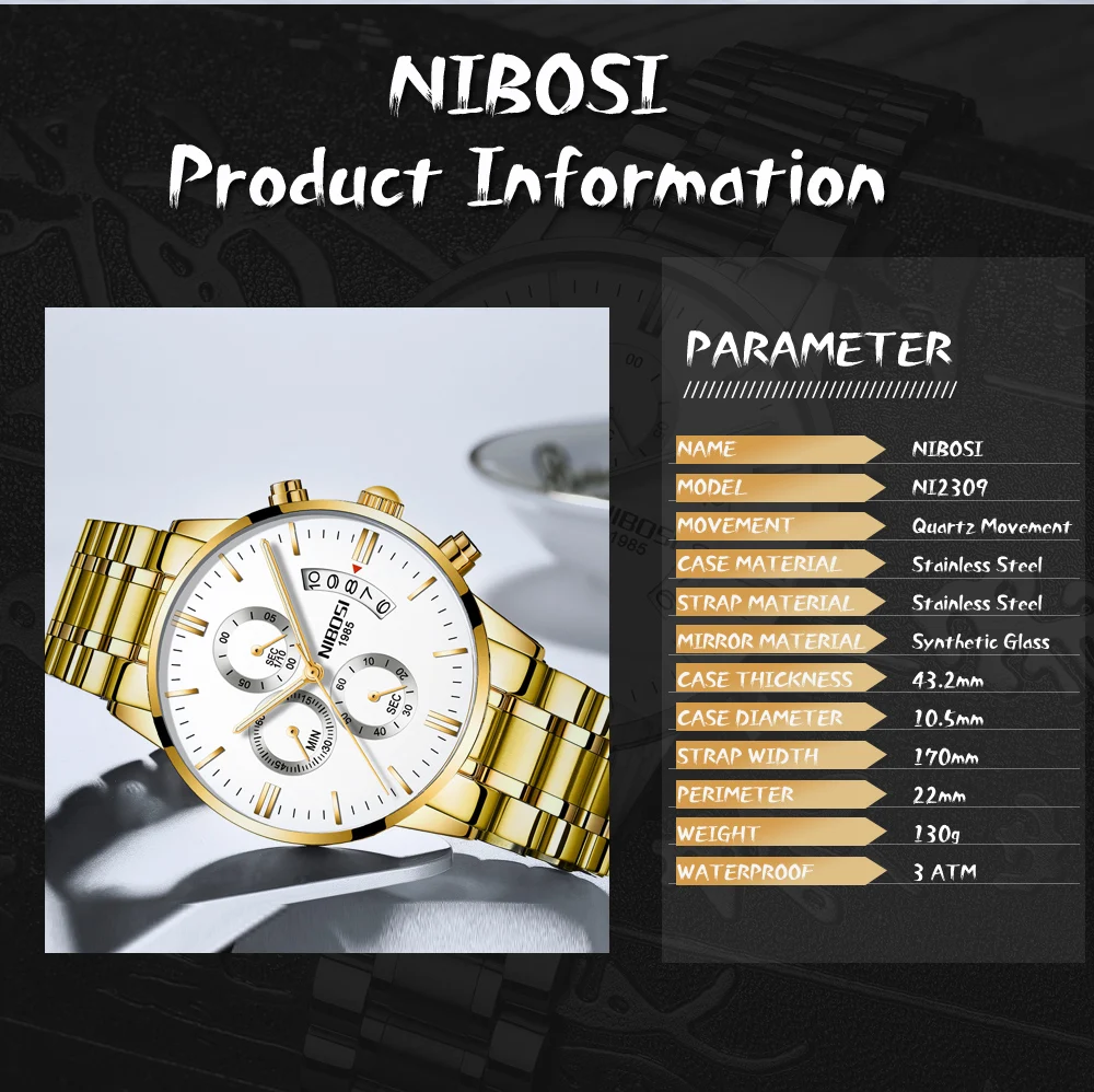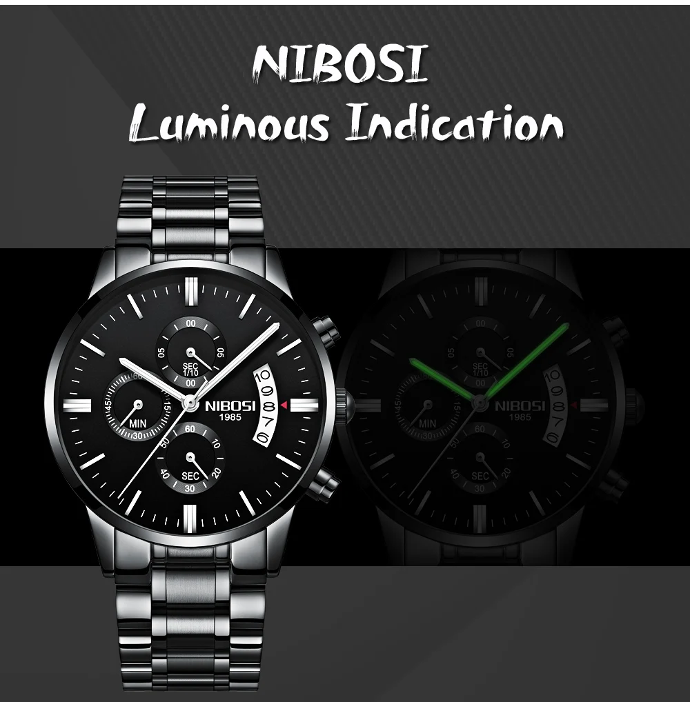 Nibosi relógios masculinos marca superior de luxo famoso moda masculina casual vestido relógio militar quartzo relógios pulso saat relogio masculino