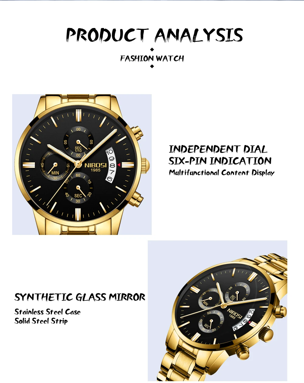 Tipo de material da pulseira: Aço inoxidável