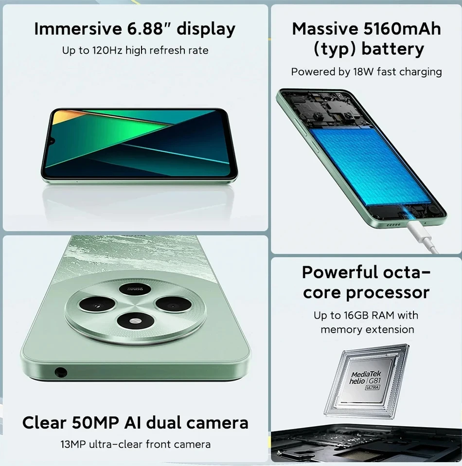 SO-----------Alimentado por Xiaomi HyperOS, versão global, suporte multilíngue e Google Play, sensor de impressão digital lateral, desbloqueio facial AI
