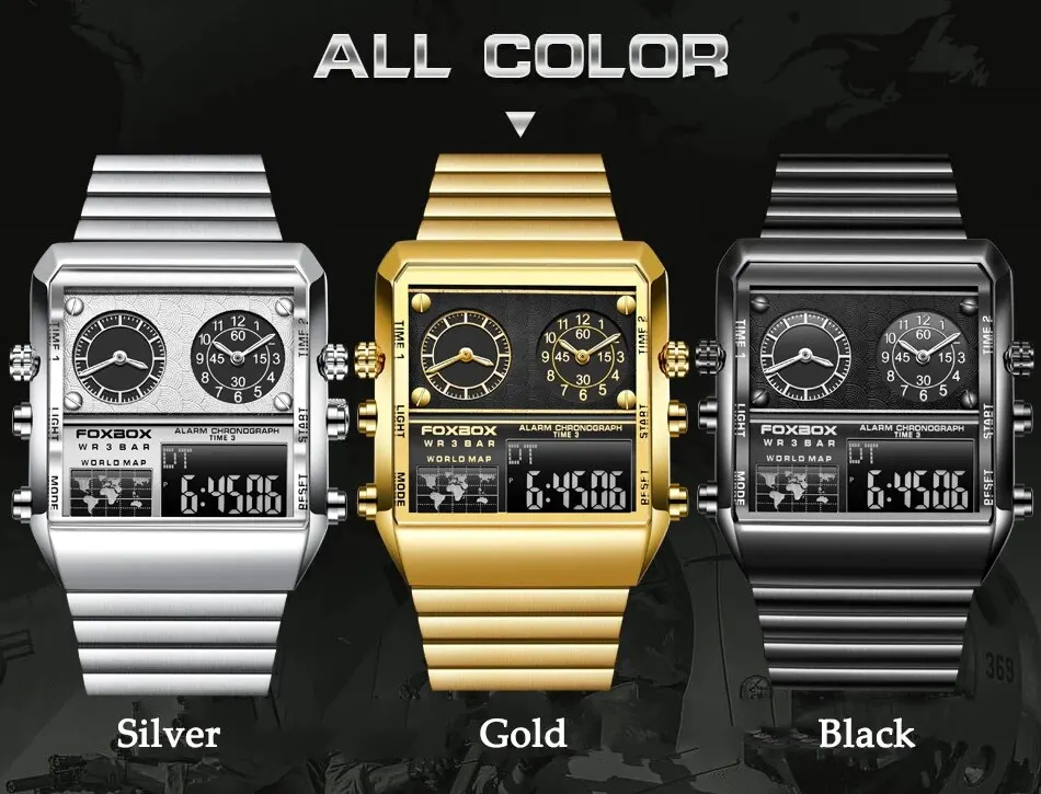 • Exibição dupla :O relógio apresenta dois monitores, um no rosto e outro na caixa, tornando mais fácil ler o tempo de qualquer ângulo.