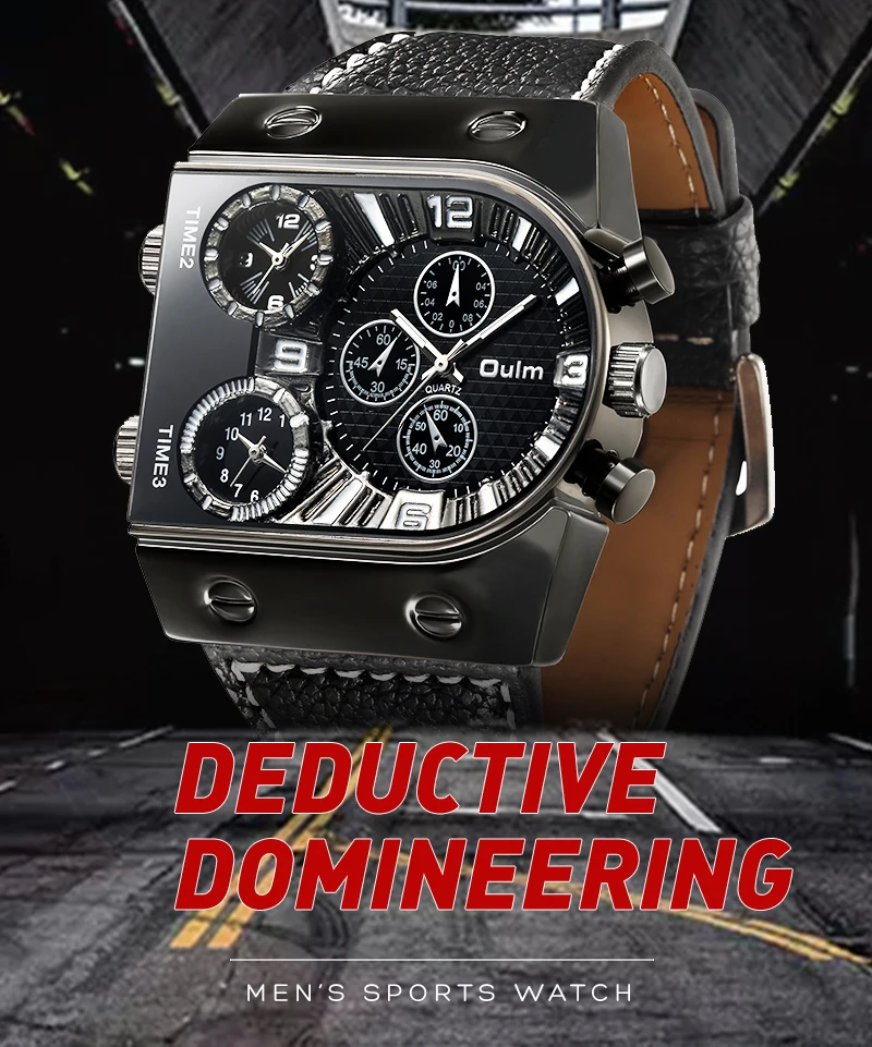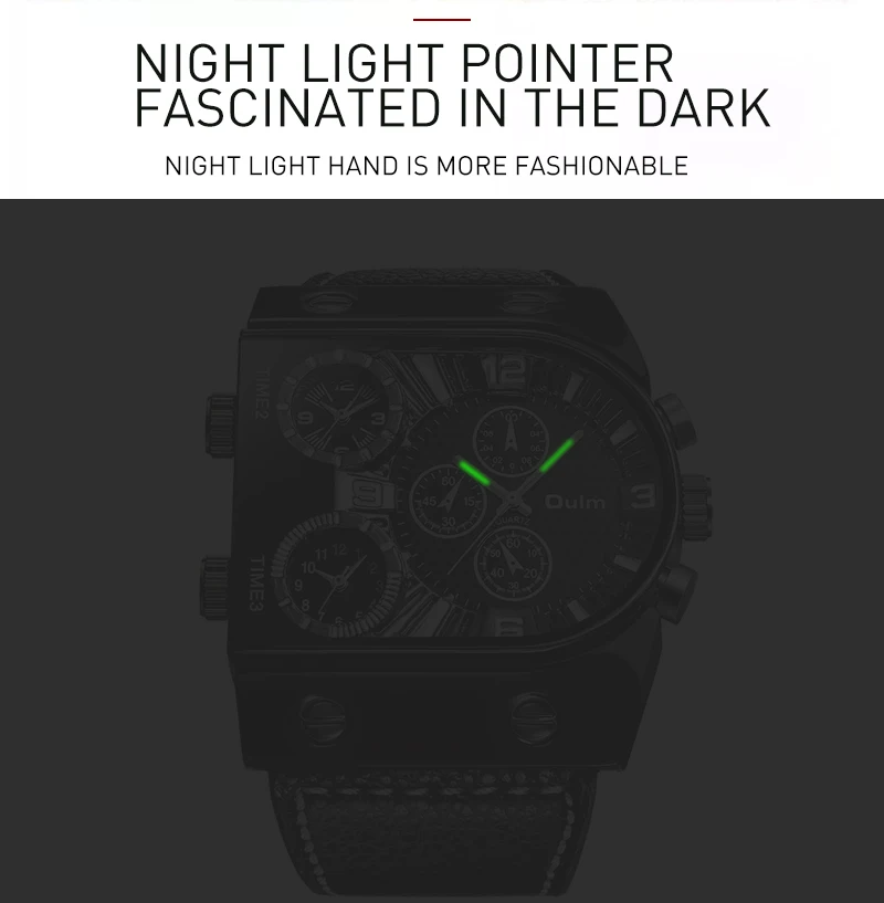 Relógios dos homens Mens Quartz Couro Casual Pulseira Relógio de Pulso Sports Man Multi-fuso horário Militar Masculino Relógio Relogios Características: Fuso horário múltiplo Resistente água Mãos luminosas 3 Fuso horário Assista Especificações: Banda Comprimento: 24cm Caso espessura: 12mm Banda Largura: 34mm Dial Diâmetro: 48mm Resistência a água Profundidade: 3Bar Tipo do fecho: Fecho do bracelete Material do Caso: Aço Inoxidável Disque Janela Material Tipo: Hardlex Band Material Tipo: Aço inoxidável Peso: aproximadamente 210g