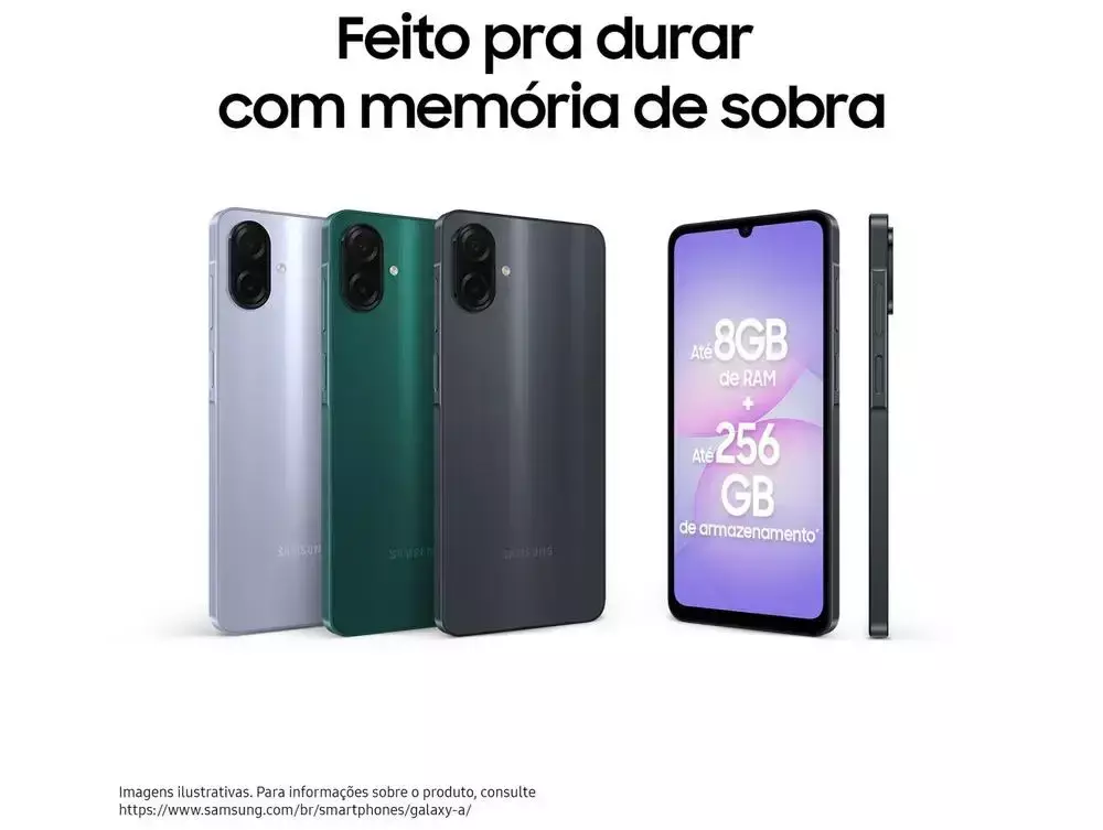 Apresentação do produto: O Samsung Galaxy A07 é a escolha perfeita para quem busca performance, uma bateria incrível e câmeras de alta qualidade. Desenhado para o seu dia a dia, ele combina um design moderno com todos os recursos que você precisa para se conectar, criar e se dive
