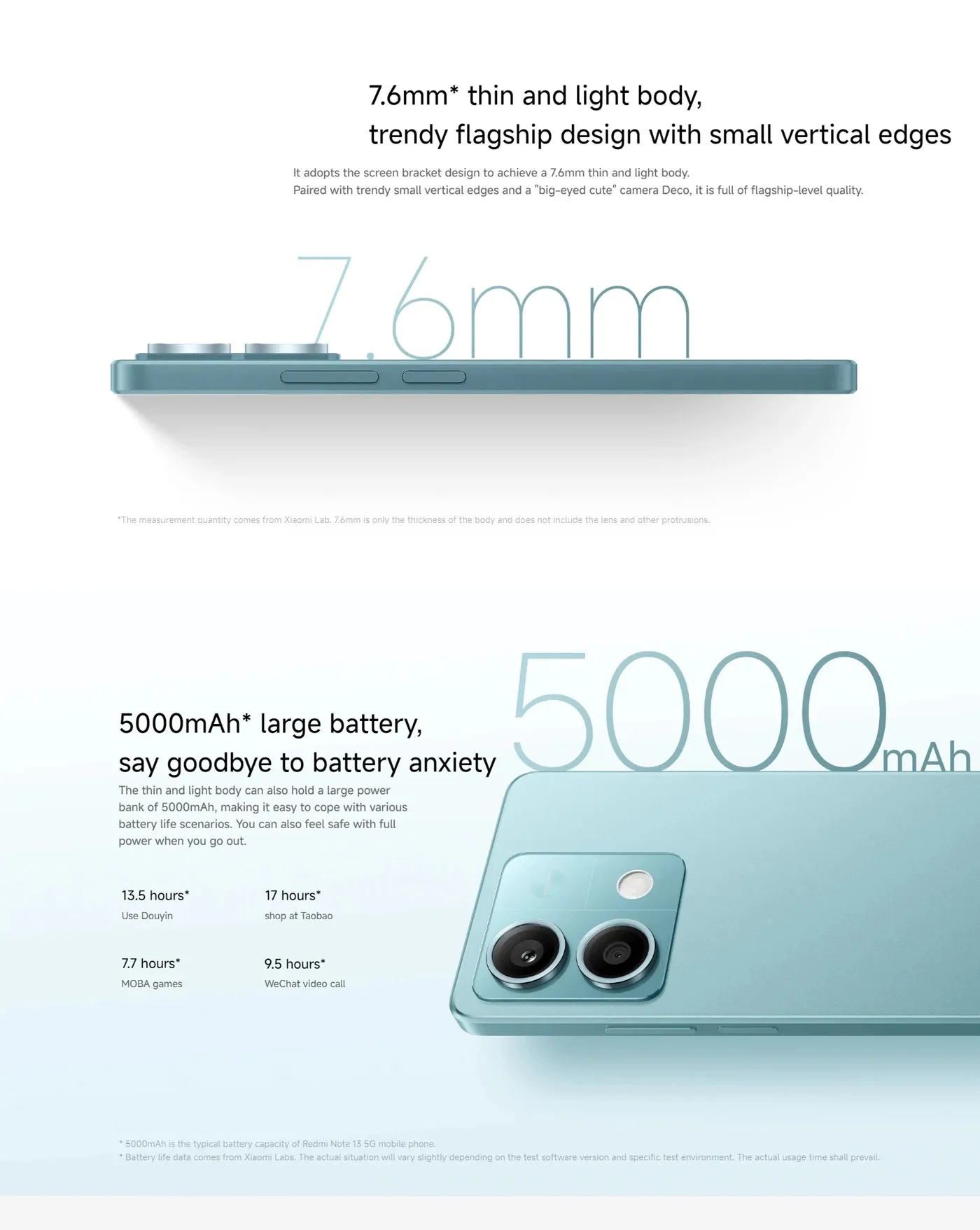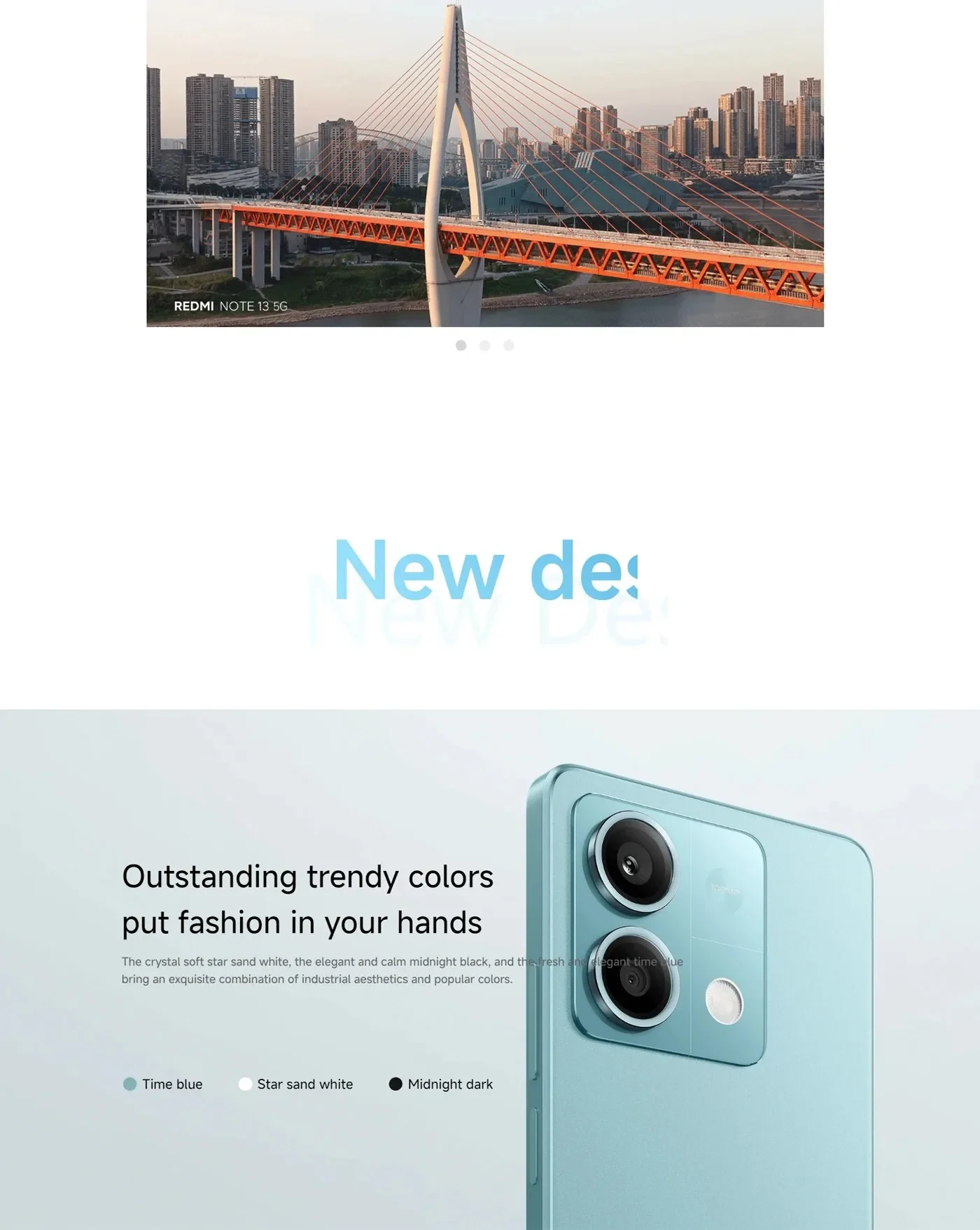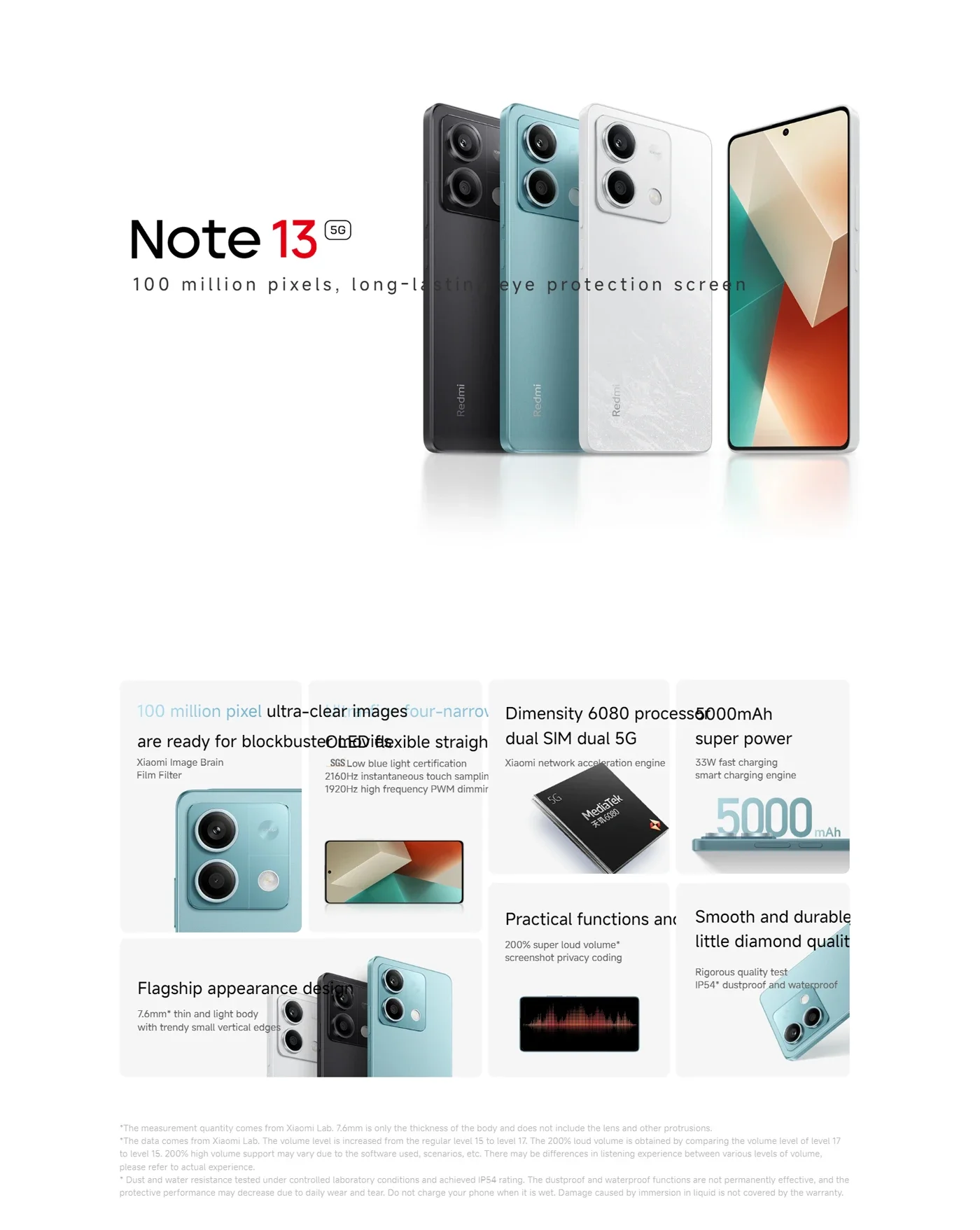 ROM Global Original Xiaomi Redmi Note 13 5G Smartphone 256GB Dimensão 6080 Ultra 140Hz Tela LCD Câmera Tripla de 64MP Bateria de 5000mAh